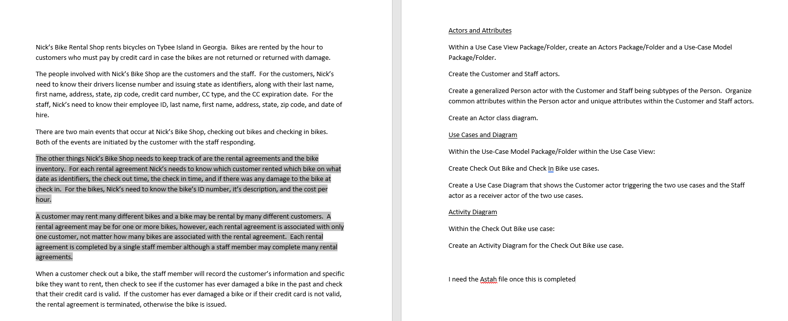 Solved Actors And Attributes Nick S Bike Rental Shop Rents Chegg Com